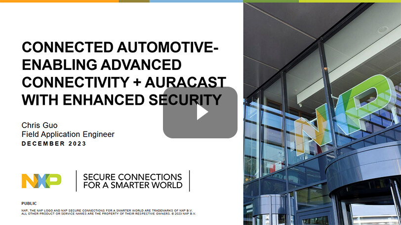 本次講座將簡要介紹車載WIFI和BT發展趨勢和關鍵技術指標,Auracast 技術對車輛BT應用的影響,以及Auto Security 相關的考量以及恩智浦在該領域的技術先進性。